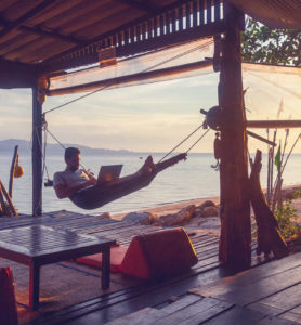 Young attractive guy a man with a beard in a hammock with a lapt Leave a Comment / By stromandbir@gmail.com / January 3, 2022